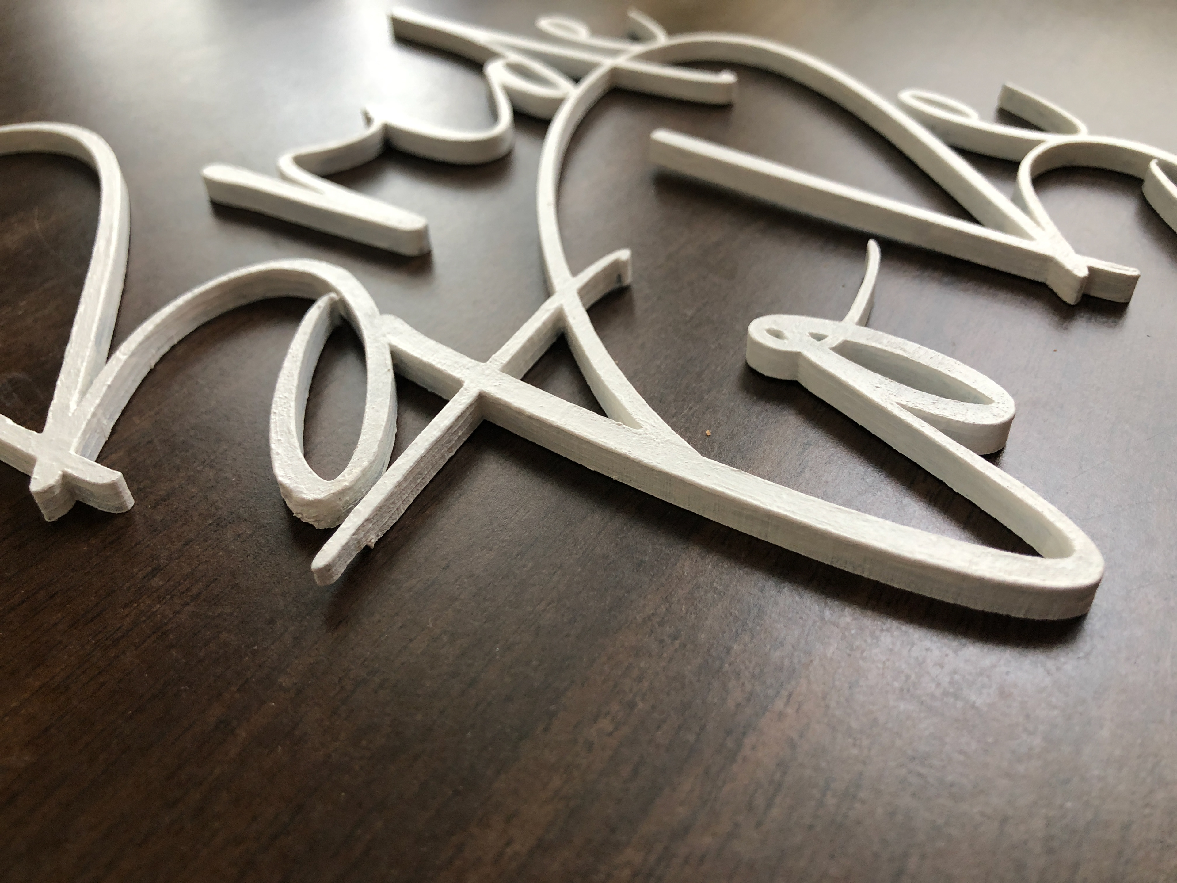 The next step in creating this sign was to cut out the letters for the sign and attach them. I used a laser cutter to do this step, and then painted the letters white. I experimented with different fonts and widths before deciding on the final product.