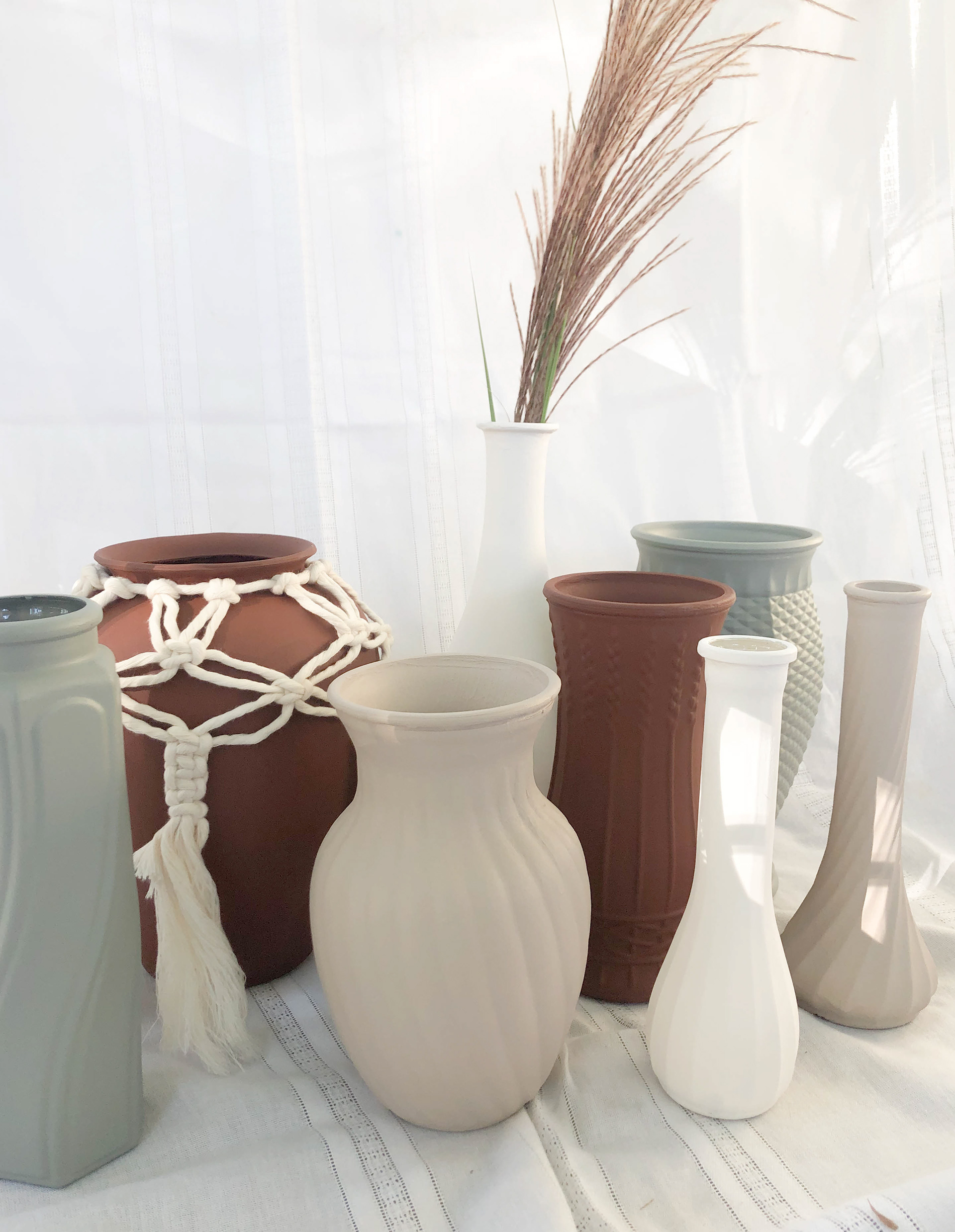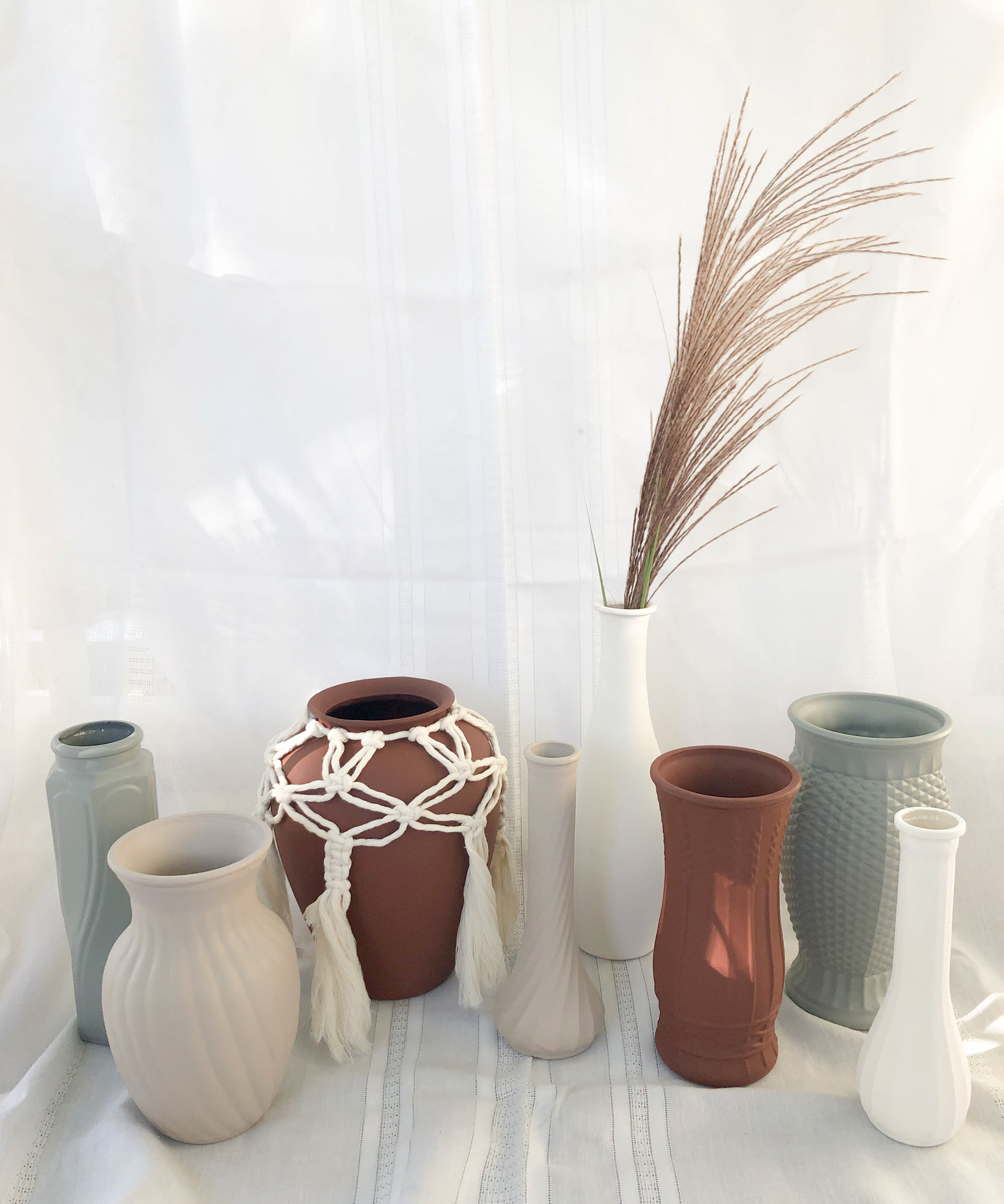 Glass Vases - Paint - Baking Soda - Macrame cord